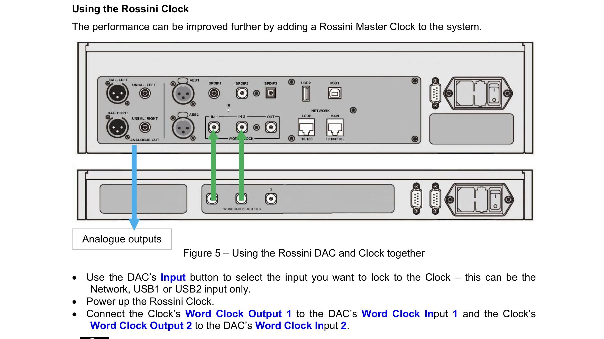 I’m not aware that the inputs/outputs on my Rossini and Clock are labelled with frequencies, so I’ve just done left to left and right to right. Pretty easy in a stack.